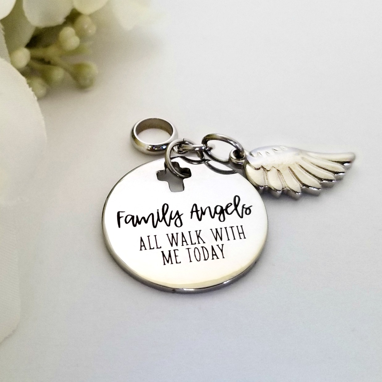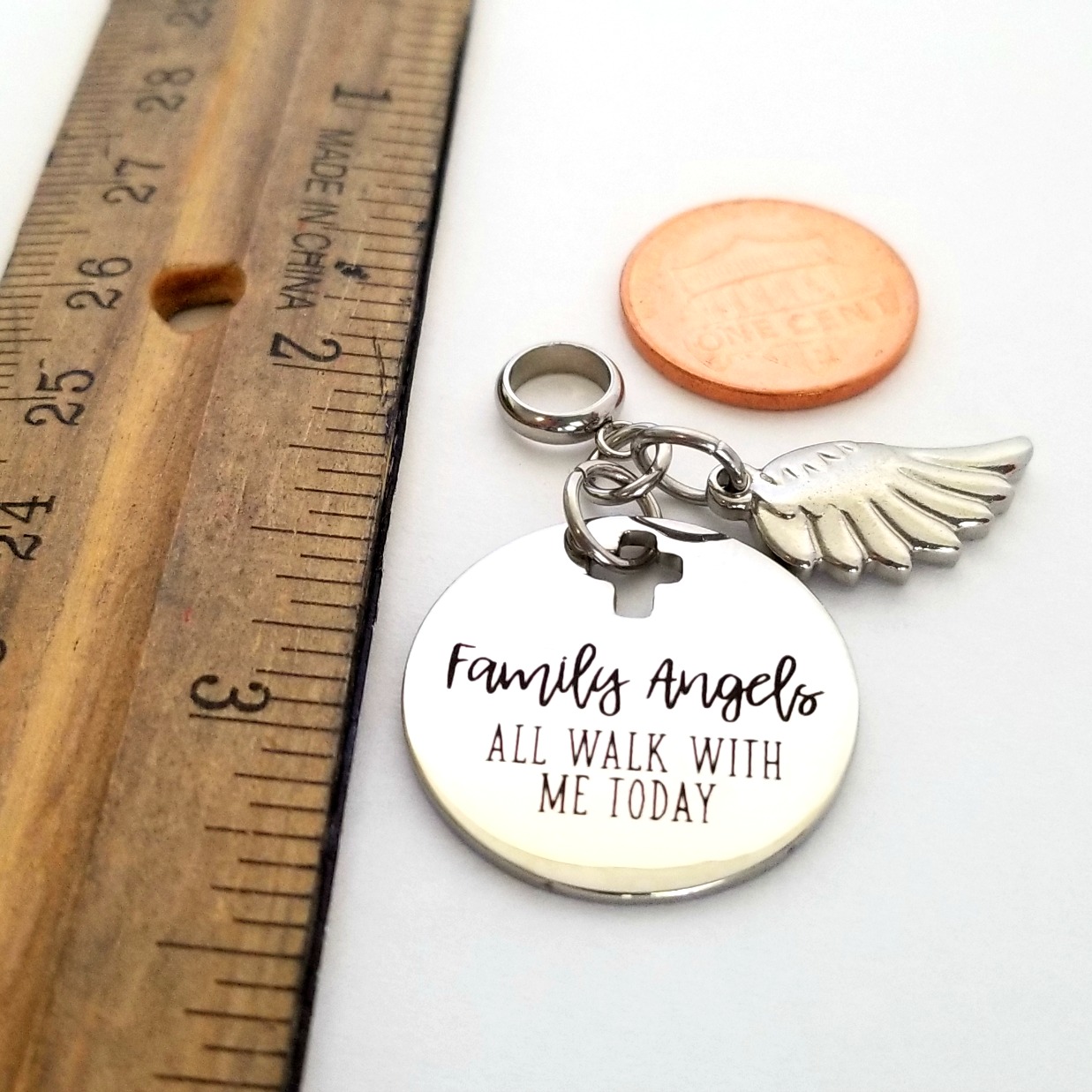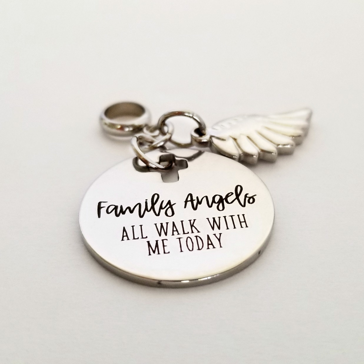 Stainless steel disc laser engraved, “Family Angels ALL WALK WITH ME TODAY.” Wholesale pricing adjusted in bag when you order 3 or more per design.